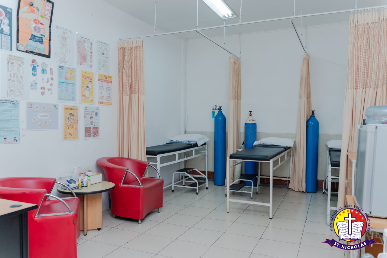Well-equipped medical room providing first aid and basic healthcare services for students' well-being.